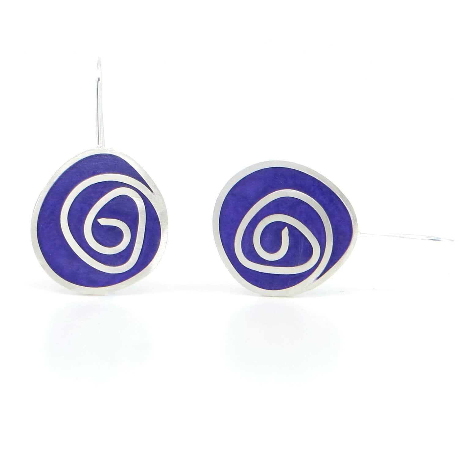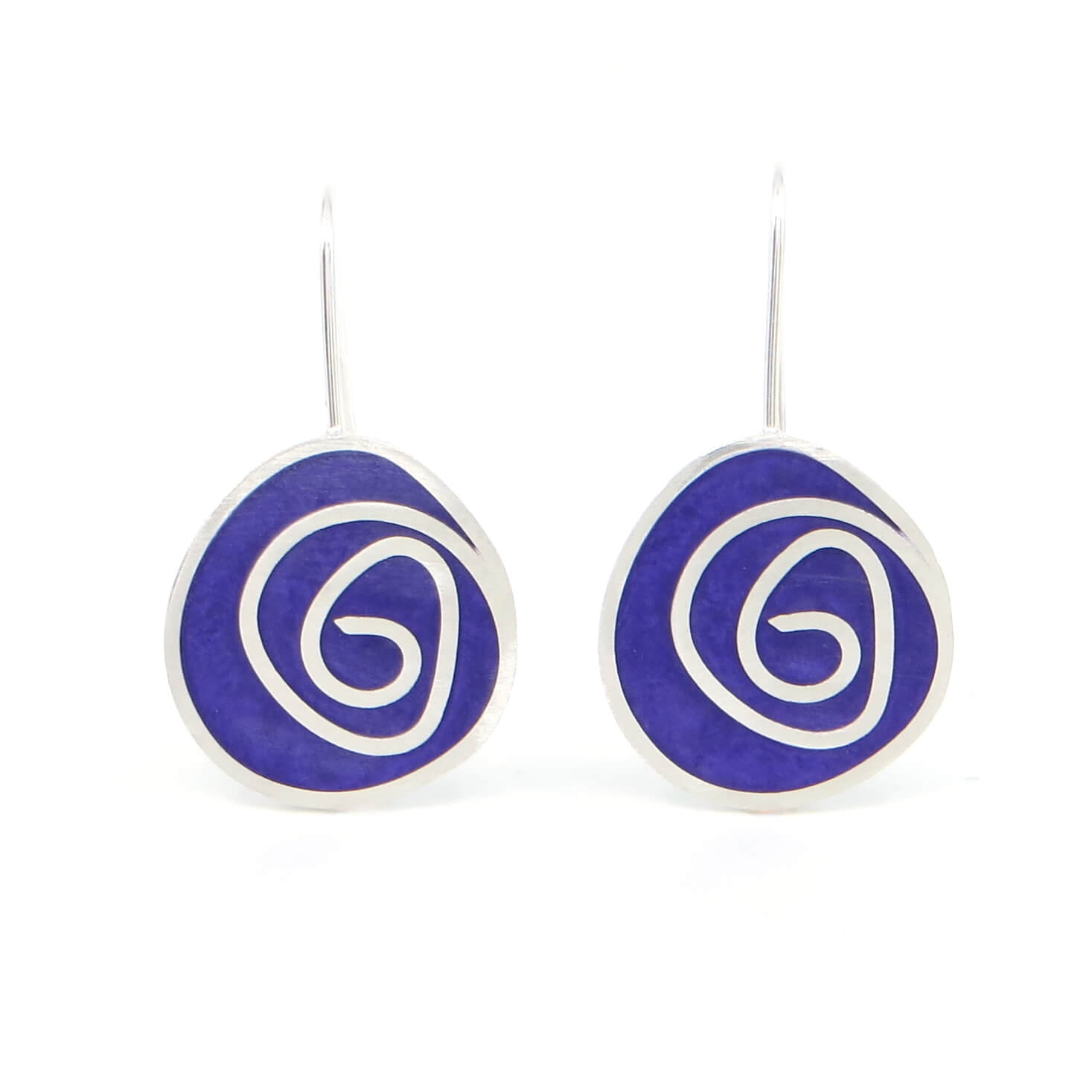 Contemporary and colorful earrings add a perfect pop of color. These sterling silver and resin inlay earrings remind some people of Macintosh roses.